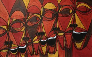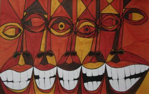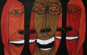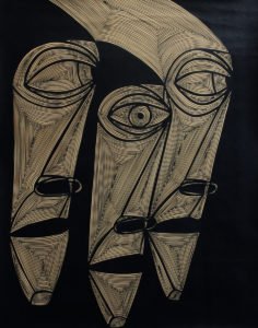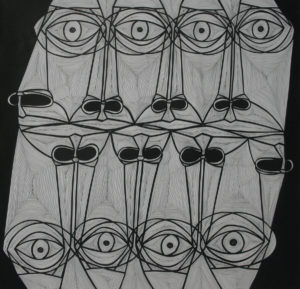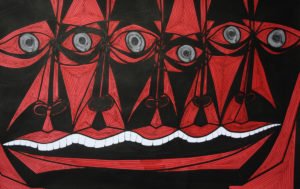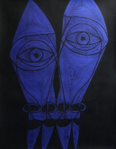 The forms created in Dhanur’s art work suggest a different and unconventional way of interpreting beauty. These forms are so exciting that one almost ignores the aspects of colour and chaos in the works. The nuances of sketching , colour balance or even his monotones leave a deep impact owing to the skillfully drafted faces. Though his works do not directly engage with any one particular social or political issue, it takes on a more individual almost autobiographical role in the term of a mental response or reaction towards the issue that we as human trying to grapple with.