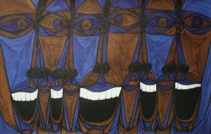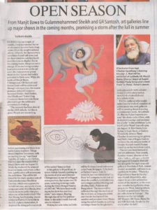 Dhanur is a very skilled draftsman whose work tries to explore the changing mental landscape of the human mind .The various human expressions and emotions which mark the distorted forms and colours in his drawings bring to the fore an aesthetic that plays with observation, satire, emotions and expression.