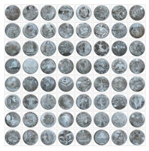 Seema Kohli, Chausath Yogini II, Zinc Plates, 5 inch diameter(each), 2013