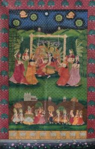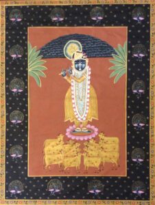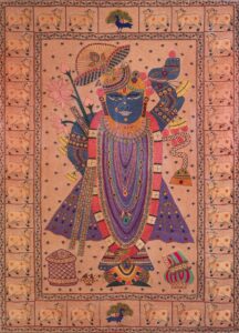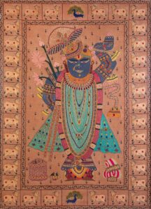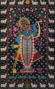 Anil Khakhoriya was born in 1975. His family has been doing embroidery in the Kutch region for generations. They are devout followers of Shrinath ji. Anil & his mother together work on these Pichwai’s. It is their labour of love for the devotee they so strongly believe in. The eclectic colours of Kutch are apparent in their art.