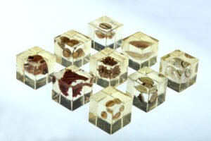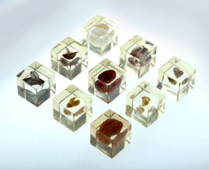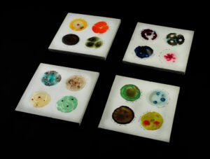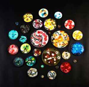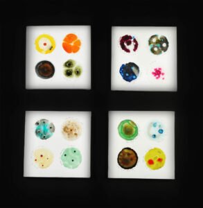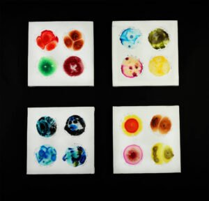 observe and study. It is a perception of the imperceptible. As unprecedented times take over, the microbial takes center stage and the cellular vies for protection. The series of works ‘Am I Fine?’ documents the everyday worries of living through the pandemic. The relief of not falling prey to the virus portrayed by interpretations of one’s cells – tests indicating well-being, dated and marked “I am fine..”