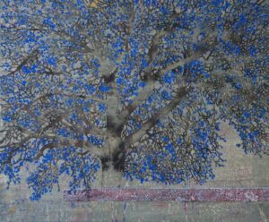 G R Iranna, Meditative Tree, 42×58 Inches, Water Colour and Taracota on Paper, 2017