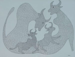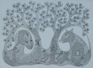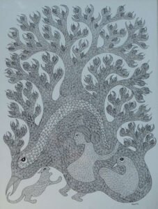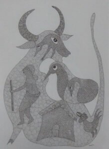 Dhavat Singh, Gond Artwork, 15 x 11 Inches, Pen and ink on paper, 2016