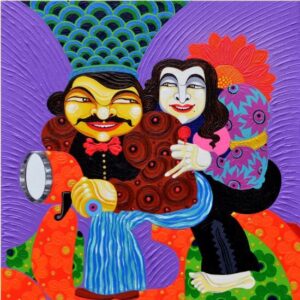 Pradiptaa Chakraborty, The Cosmopolitan Jamboree, Acrylic on canvas, 12×12 Inches, 2016