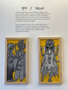 Mool (origin) brings together different indigenous art practices in the country – rooted in longstanding traditions. These have evolved from different murals and religious imagery in different parts of the country The contemporary works depict folklore and the artists’ present environment, as well as the traditional imagery.