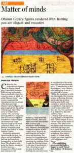 While Goyal is no outsider to whatever is loosely deemed as ‘Modernism’, the imaginative qualities that he frequently seems to project in his work are drawn from the still living Nritya tradition and which is so largely reflected in the Indian dance forms. Forms, both art wise in their higher rung, as much as in the rites, rituals and ‘spiritistic’ communions of the folk. You just have to watch his key images to realize this aspect of his genre. Well/ even if any other artists happen to shore his unusual vision, his own acute, spore symmetry steeped manner takes his compound creations to an elevated plane. They become artistically compelling; his geometrical rhythms suggesting a movement which energizes and quickens our pulse.