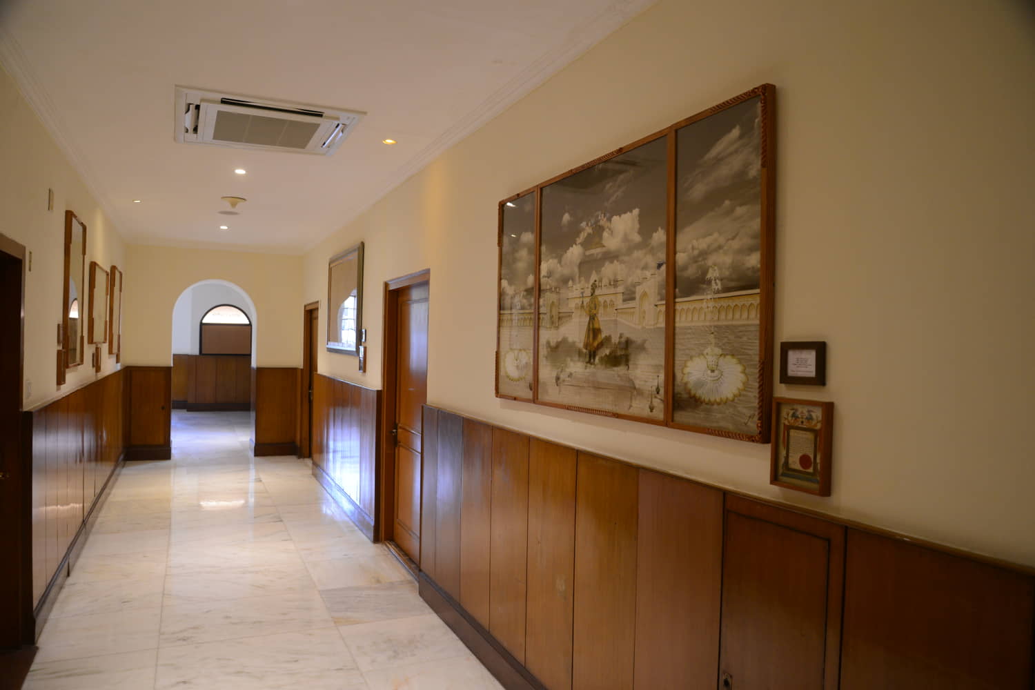 Sang-e-Badal is set in the Lahore Fort, where the artist conjures an image of a walk in the clouds. Water and itr sprinkled onto marble floors to create a fog – a cloud-like experience for the emperor to fulfill his desires to walk on the clouds. The effect invites birds, creating a sense of levitation for the emperor, and the viewer.
