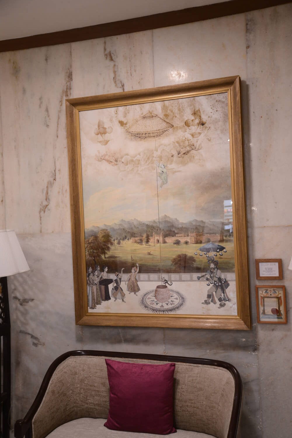 The Mughal Period has a large influence on his creations. The power held by the emperors and the opulence in which they lived are discernable in his work, but as vehicles for the mystical sources of their power and wealth he presents the viewer with. He seamlessly blends the infamous empire and its rulers with mythical creatures, extraterrestrials and even the other world of Agartha; using the supernatural to truly realize the expanse of the Mughal stronghold.
