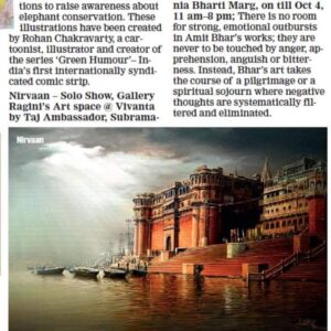 “We do not learn by experience, but by our capacity to experience,” said Buddha centuries ago. He also taught us how it is better to travel well than to arrive. Bhar’s paintings seem to be feather-touched by such thoughts and ideas.