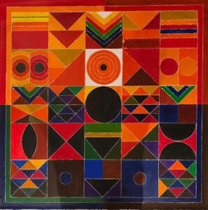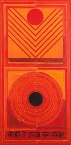 In the late 1970s, the artist’s focus turned to pure geometrical forms; his images were improvisations on an essential theme: that of the mapping out of a metaphorical space in the mind. In the 1980s, the circle or “Bindu” became the central motif. Sacred in its symbolism, it placed his work in an Indian context.