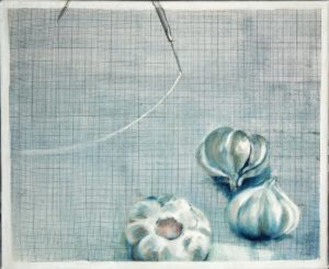 Ritu Mehra’s works are experimental in nature in terms of both subject and the medium. for Ritu art is a journey towards self- exploration, so the more she experiments with her works the more she discovers within herself. Her inspiration is derived from the simple day to day things & life forms as she believes that these simple things are nothing less than a wonderland. In Subject- Object, Ritu’s works originate from simple and mundane objects like spoons, garlic pods, a leaky tap etc; and yet these same objects presented in her paintings create a sense of calm which disconnects us from stress, anxiety and the pressures of day to day life. The artist works on her paintings keeping in mind the omnipresent creator of all the wonderful things whose creation we, in our state of unawareness often fail to see and appreciate.