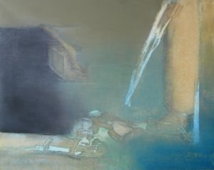 Vishakha in her earlier works dealt with closed spaces, the inadequate areas one has to cope with while living a city life, and a human existence spending time in it. As a departure to her earlier body of works the works in Subject- Object portray objective shapes stretched comfortably with a lot of breathing space. The translucent and opaque quality of the painting releases objects from its mere and mediocre utilitarian context into pure pictorial forms. Seldom marked with subtle traces of shadows and a hint of human existence, the material converts itself into the living shape within different sights to signify the vagueness and mysteries of human life. The bold lines gradually blur to disappear into the background and become visible again to create the feeling of suspension between real and surreal, a dream and the actuality. The objects, which are invariably interconnected are beings that are entering the inside space, scattering at ease or moving outside of the canvas. It is said that people often use art as a compensation for what they lack in their actual life, but these artists look at their art as ideally, things that lead back into life and thus enrich observation and awareness and as a show Subject- Object attempts to restore this perception.