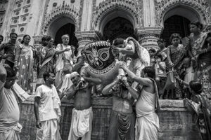 Sanjay Das has spent a decade to capture the spirit of rural Bengal and has documented facets of its heritage, as evident in its terracotta temples, tribal life, architecture, fairs, festivals, rituals and folk arts. He has photographed with the brutality of clarity the local folk artists, mask makers, weavers, conch shell craftsmen, patachitra painters, idol sculptors. His work is for those who may never see these people in real life, as also to contribute to the archive of the life and time of rural Bengal in the early decades of the 21st century.Â